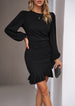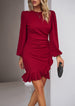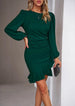 Materiał: poliester Styl: dziewczyna z biura Sylwetka: LINIA A Typ wzoru: jednolity kolor Długość rękawa (cm): pełny rękaw Długość sukni: długość do kolan Rodzaj rękawa: Bufiasty rękaw