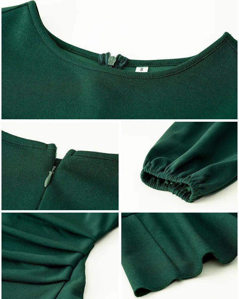 Sukienka w jednolitym kolorze z bufiastymi rękawami, o romantycznym i miękkim kroju, dzięki której możesz emanować kobiecą elegancją przy różnych okazjach!🌸👗
