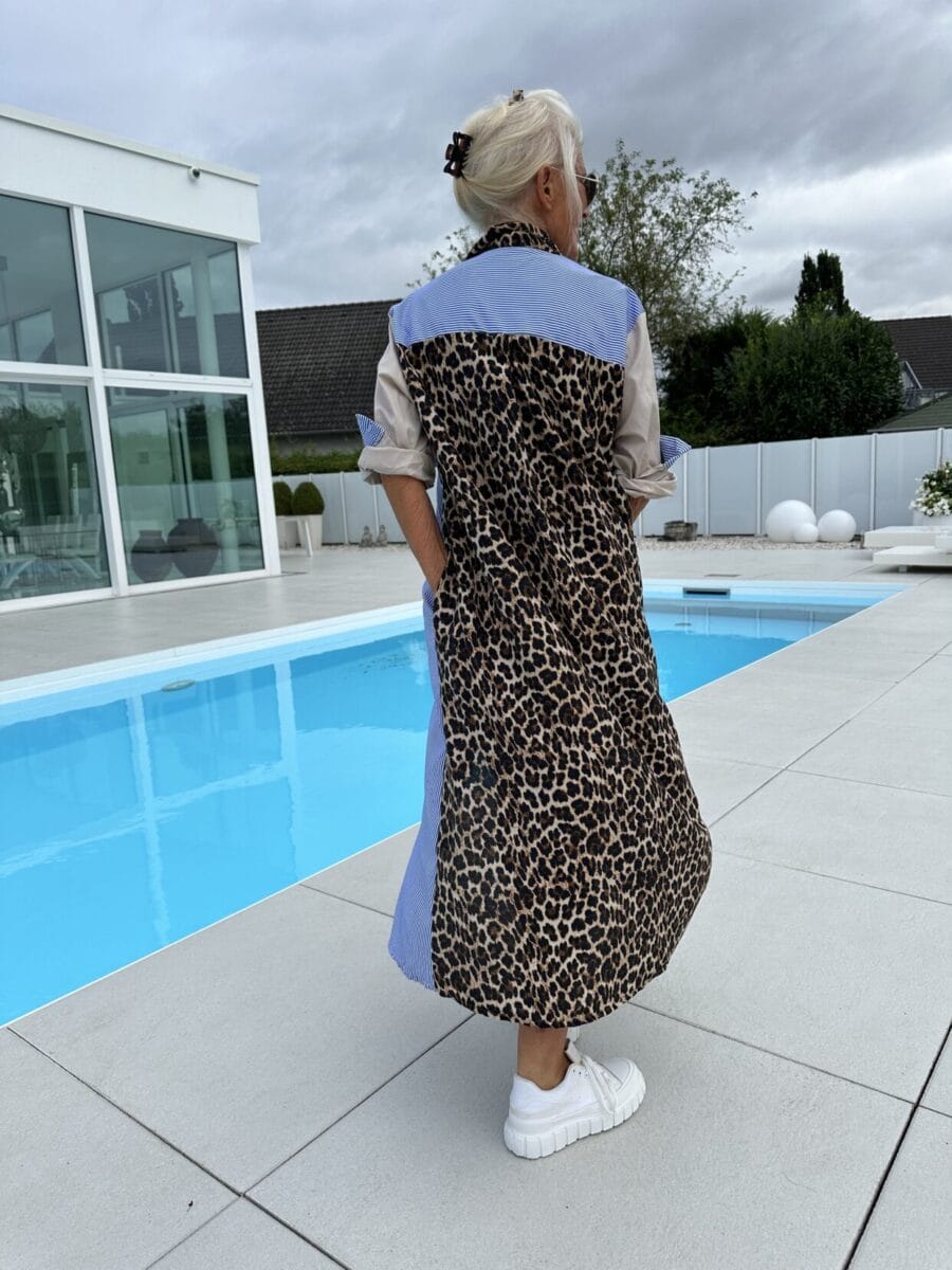 Zwiększ ilość dla 2024 nowa długa sukienka koszulowa w panterkę