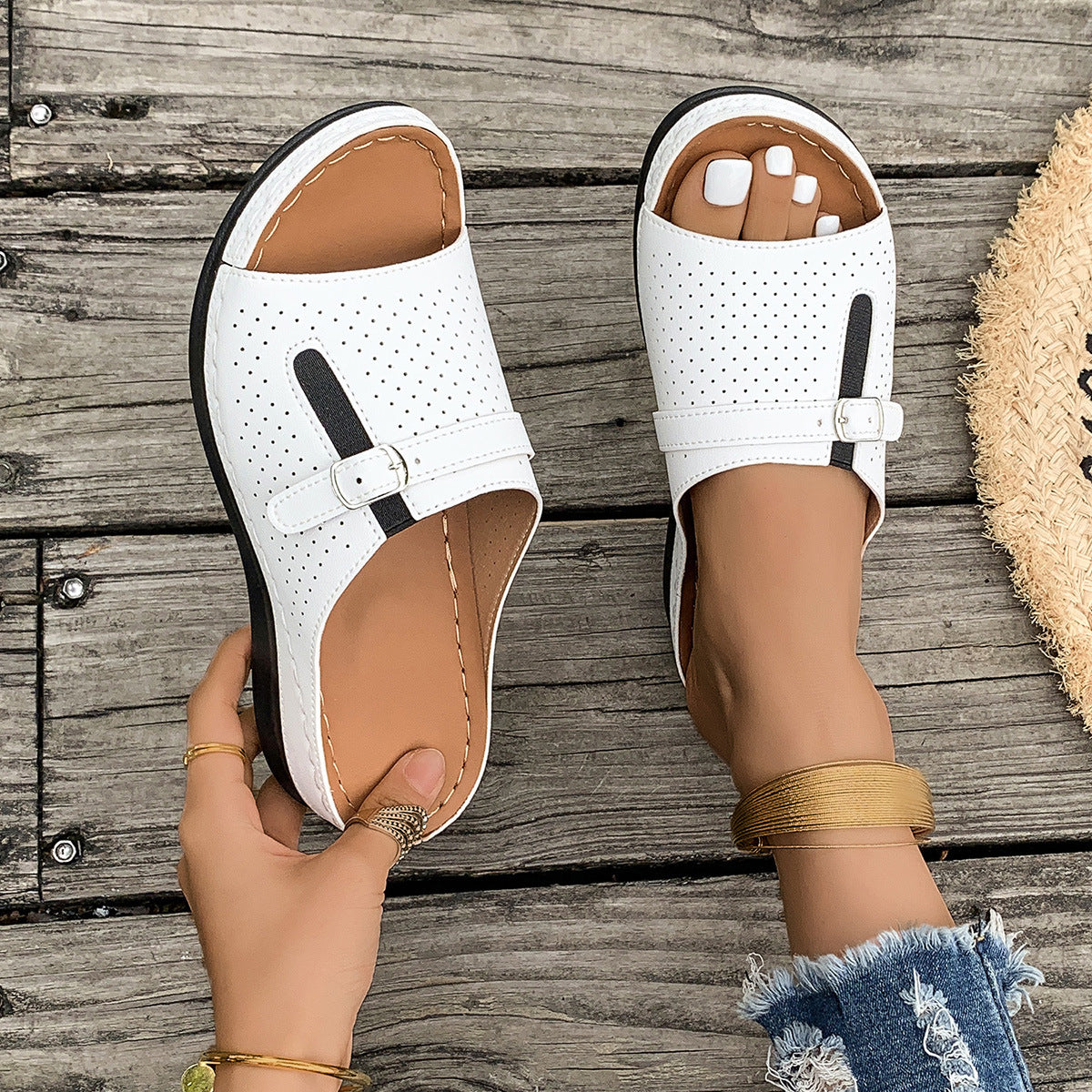 Projektowanie otwartego palca: otwarty projekt tych sandałów oferuje nowoczesny i modny wygląd. Ten styl pozwala na oddychalność i poczucie swobody, zmniejszając poczucie uwięzienia, które może mieć buty z zamkniętymi palcami. Projekt otwartych palców jest często kojarzony z swobodną i letnią atmosferą, co czyni go popularnym wyborem do ciepłej pogody. Zapewnia również wszechstronny wygląd, który można sparować z różnymi strojami na różne okazje.