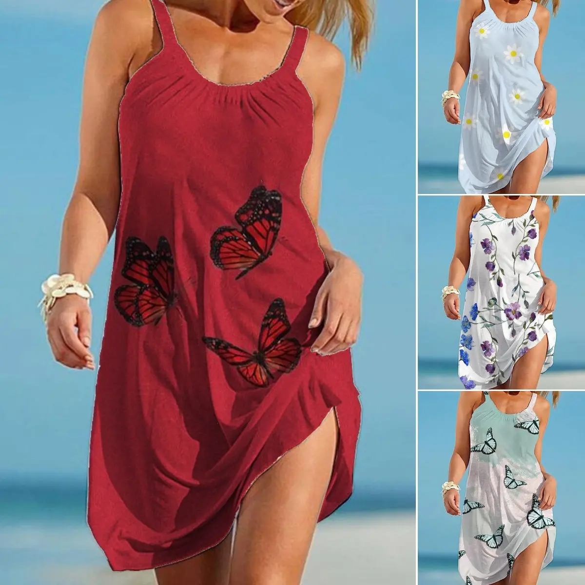 2025 Letnia sukienka damska z nadrukiem na elastycznej talii i szelkach