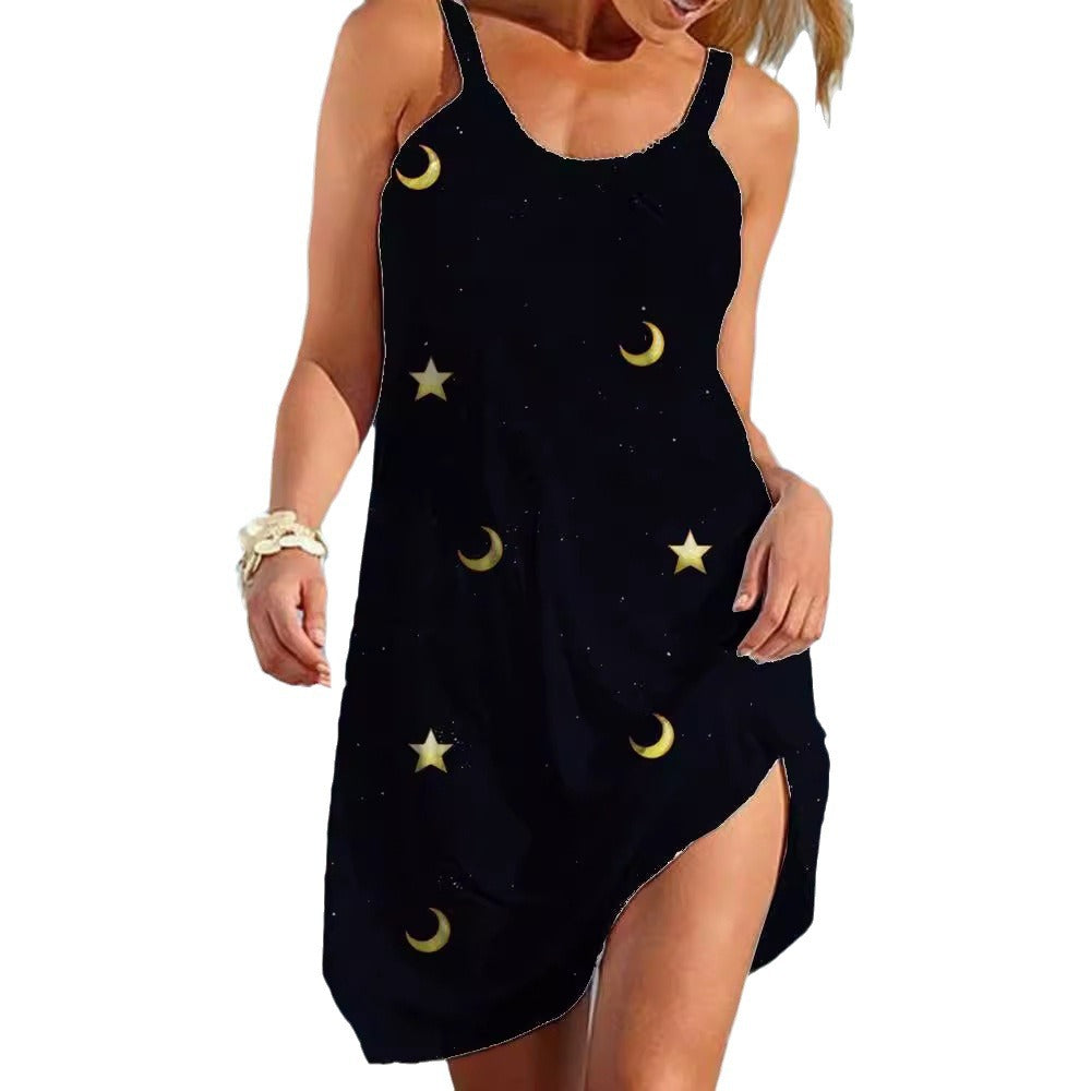 Zwiększ ilość dla 2025 Letnia sukienka damska z nadrukiem na elastycznej talii i szelkach