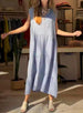 Wyróżnij się modą, długą suknią bez rękawów, z dekoltem w kształcie litery V, z warstwowymi guzikami dla kobiet. Ta stylowa i elegancka długa sukienka jest idealna na każdą okazję, niezależnie od tego, czy jest to przyjęcie w ogrodzie, wakacje na plaży czy nieformalne wyjście.