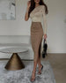 Dwuczęściowy zestaw: swobodny top z jednym rękawem i spódnica z rozcięciem