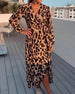 Sukienka z dekoltem w kształcie litery V i szykownym nadrukiem w panterkę zachwyca dziką elegancją. Zachwyć się wyrafinowaniem na każdym kroku dzięki tej odważnej i wszechstronnej kreacji modowej.