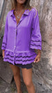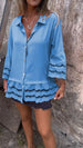 Pełen wdzięku, wydrążony patchworkowy brzeg z falbaną zwiększa ogólny urok, dzięki czemu ta koszula idealnie nadaje się do dodania odrobiny romantyzmu Twojemu zestawowi.