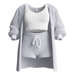 - Zestaw zawiera top, spodenki i kurtkę z kapturem.