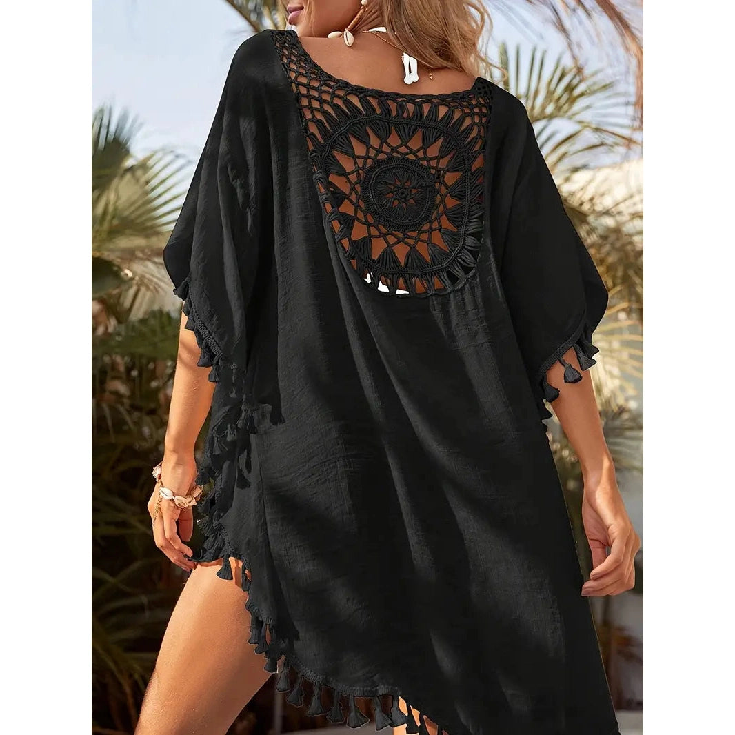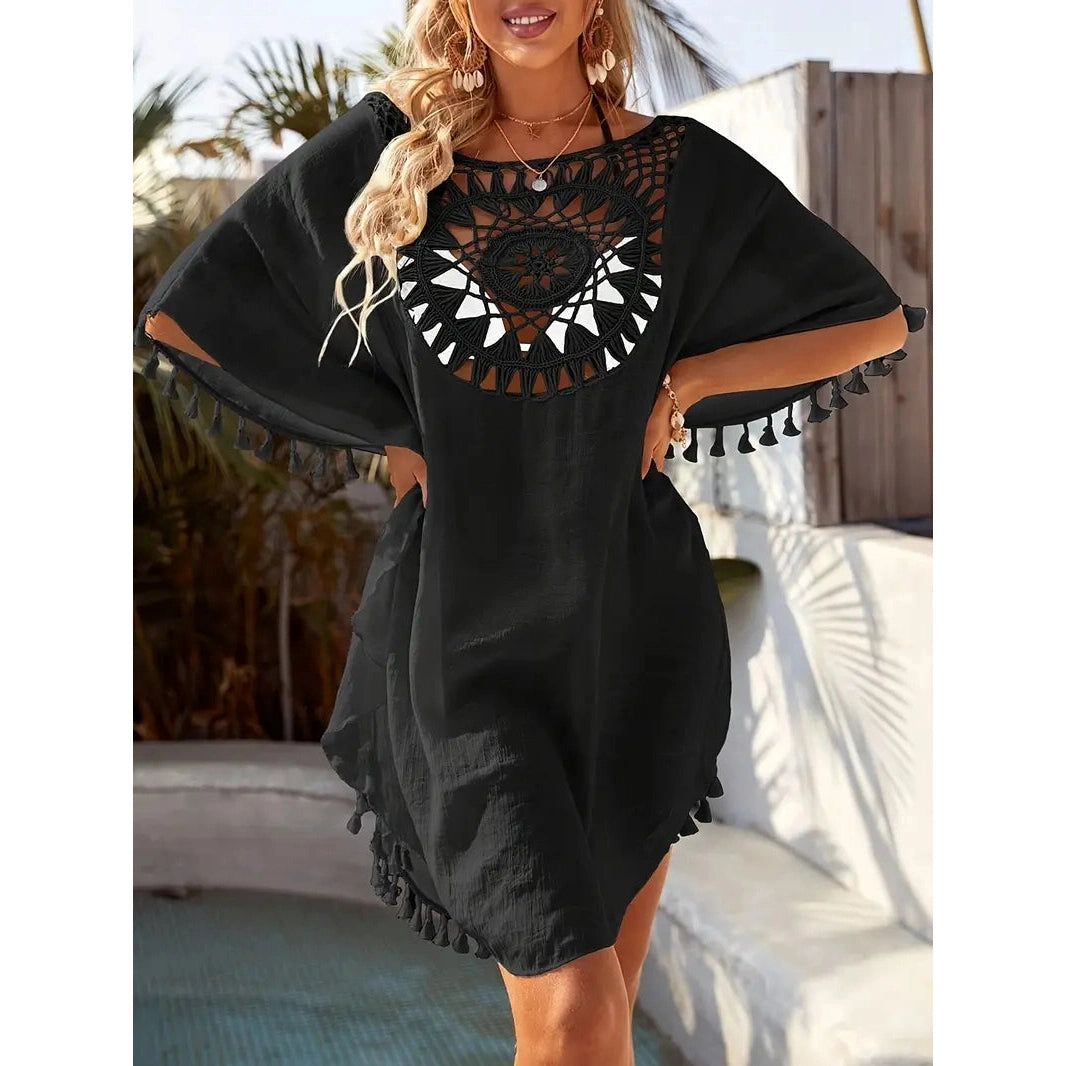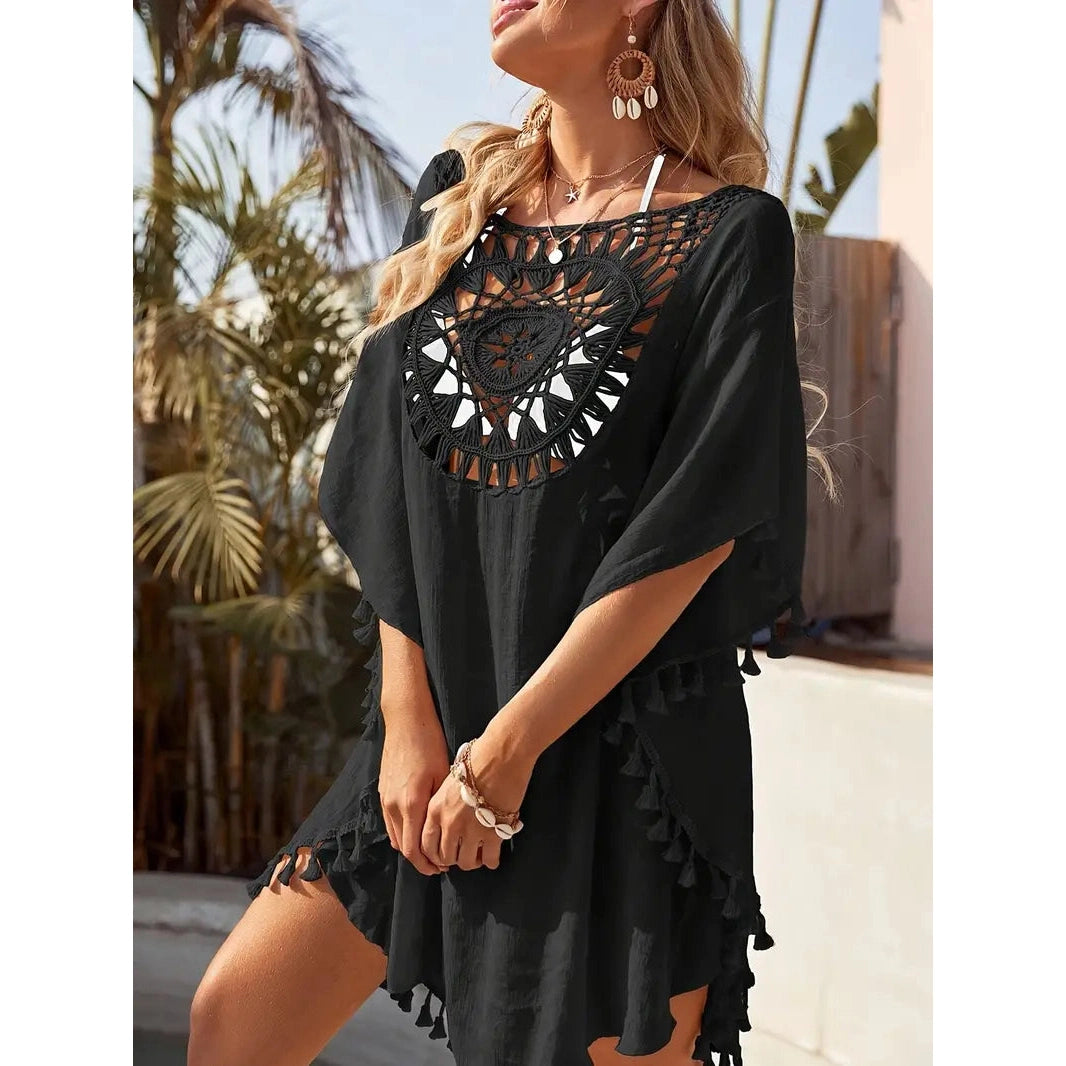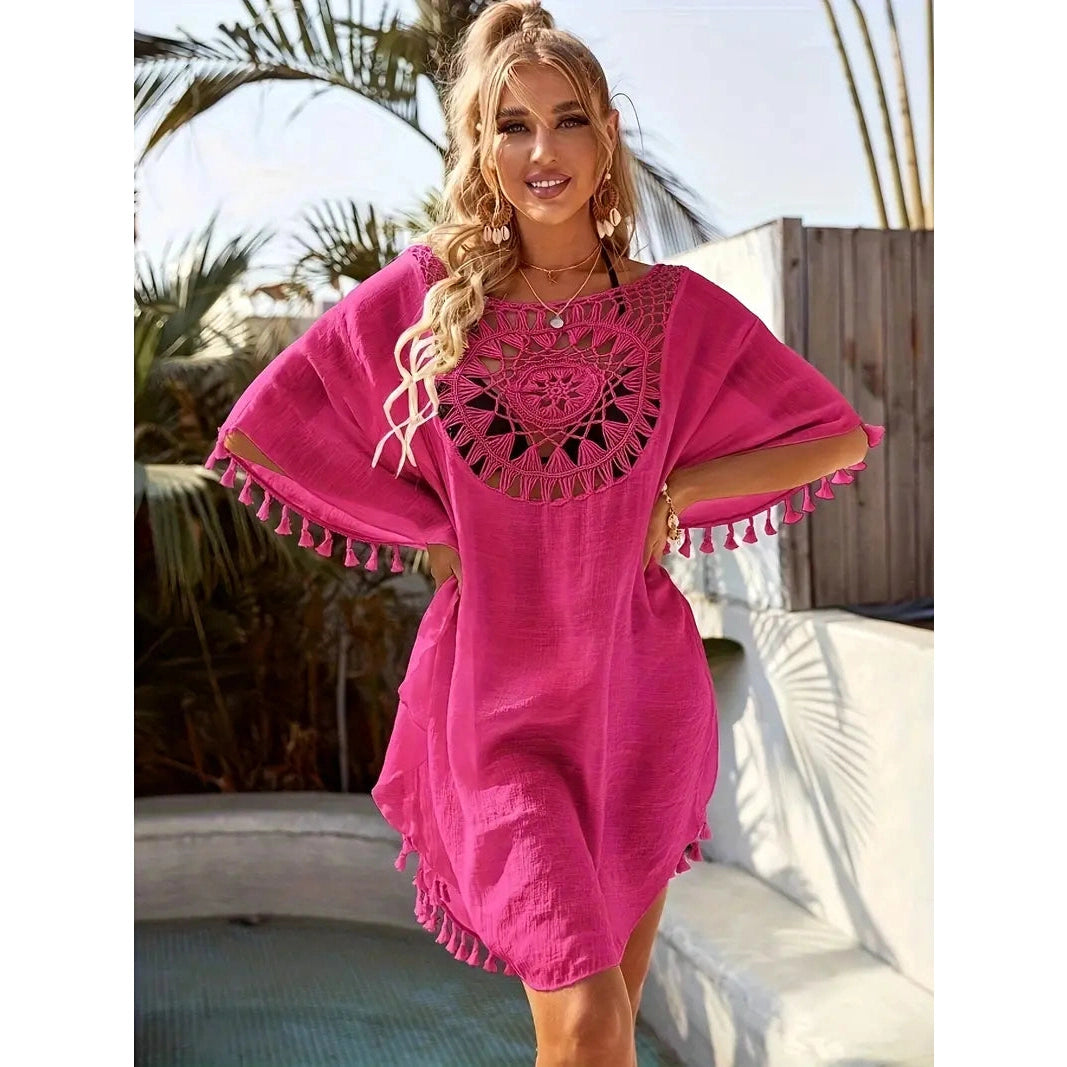 Ta żeńska koronkowa tunika jest przeznaczona dla tych, które cenią styl, lekkość i kobiecość. Wyjątkowy koronkowy wzór zapewnia subtelną elegancję, a frędzle ozdobione zabawą. Tunik wykonany jest z lekkiego materiału, który przyjemnie leży na ciele i nie ogranicza ruchów nawet w najgorętszym dniu.