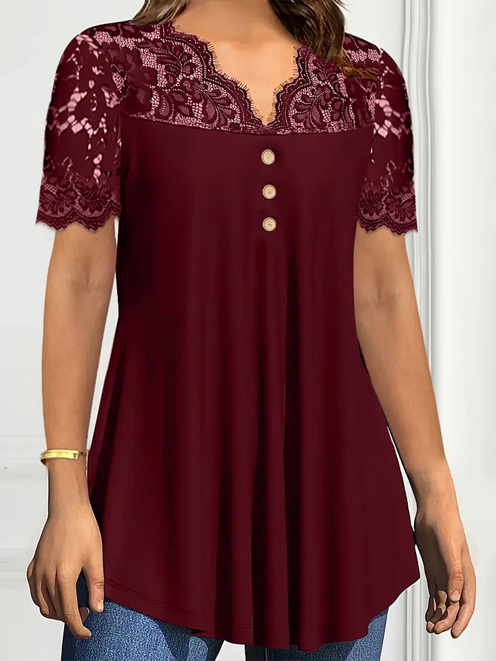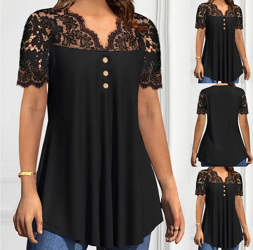 Koronkowa koszulka dla kobiet z wycięciem V |