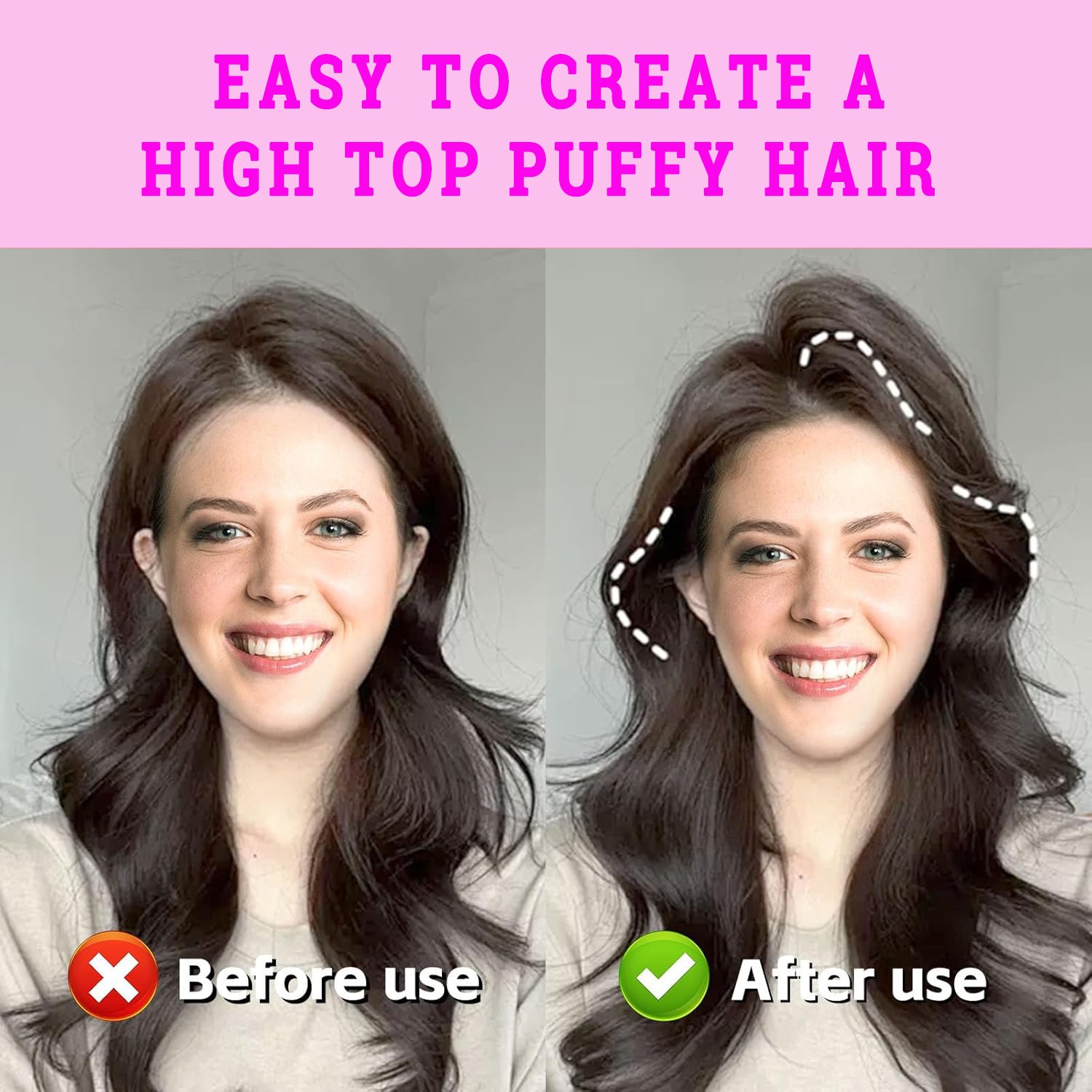【Łatwo stwórz wysoki puch】 Unikalna konstrukcja pasuje do krzywej głowy, a korzenie włosów można łatwo podnieść za pomocą jednego grzebienia, tworząc naturalny i pełny wysoki puszysty efekt, natychmiast poprawiając ogólny kształt.