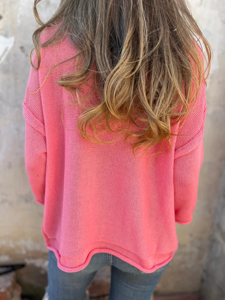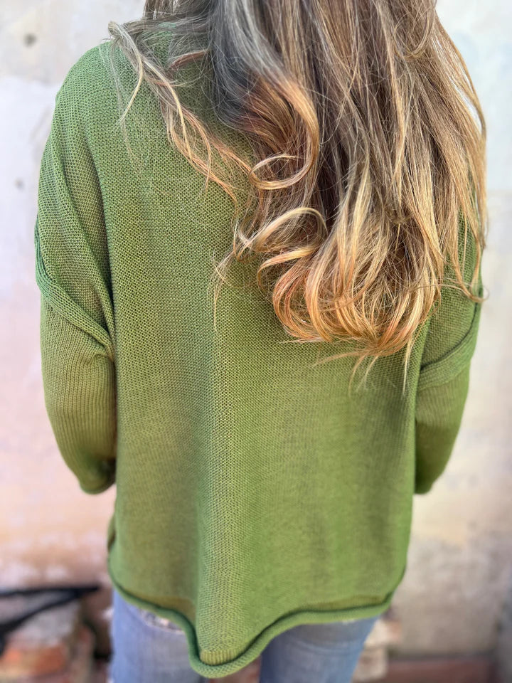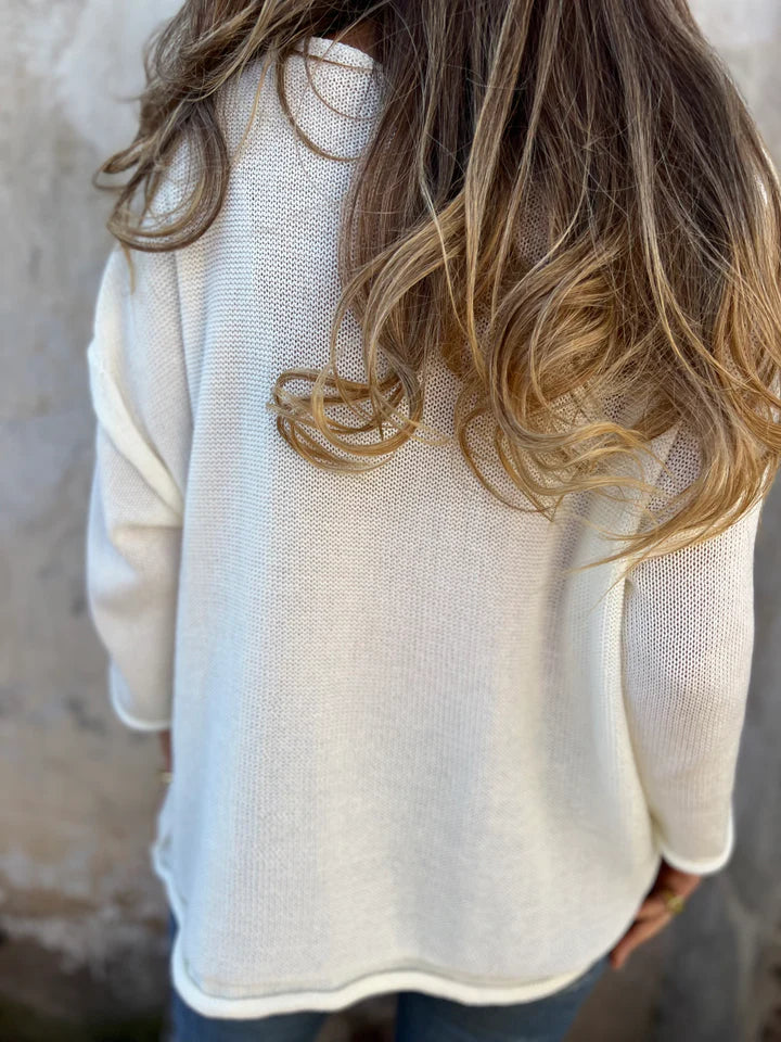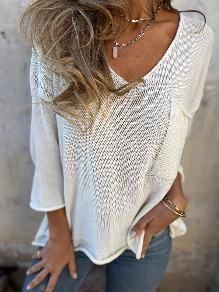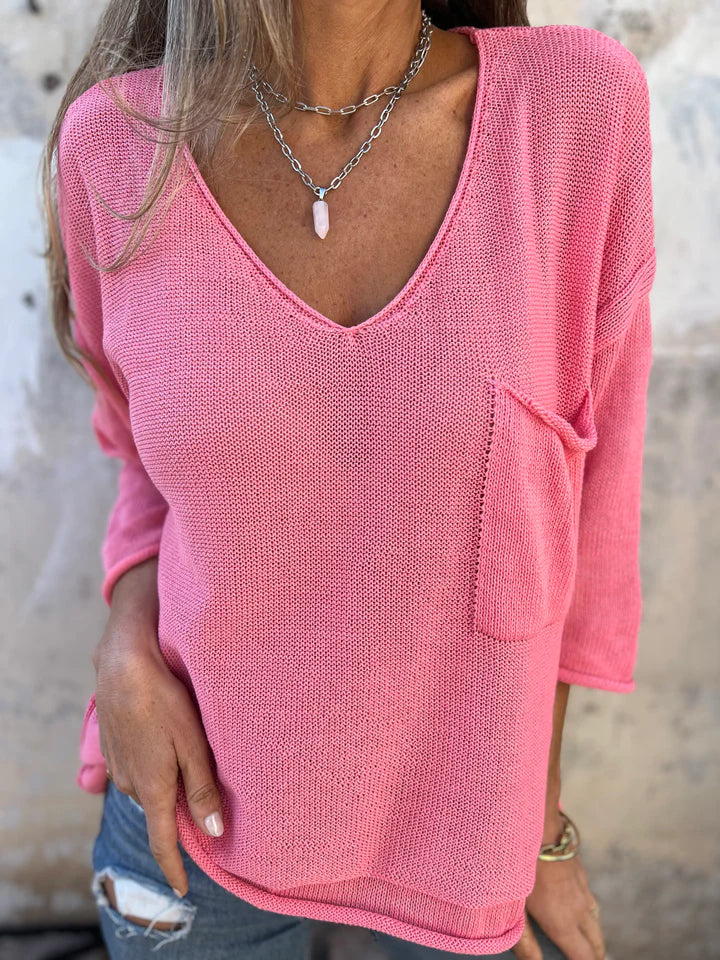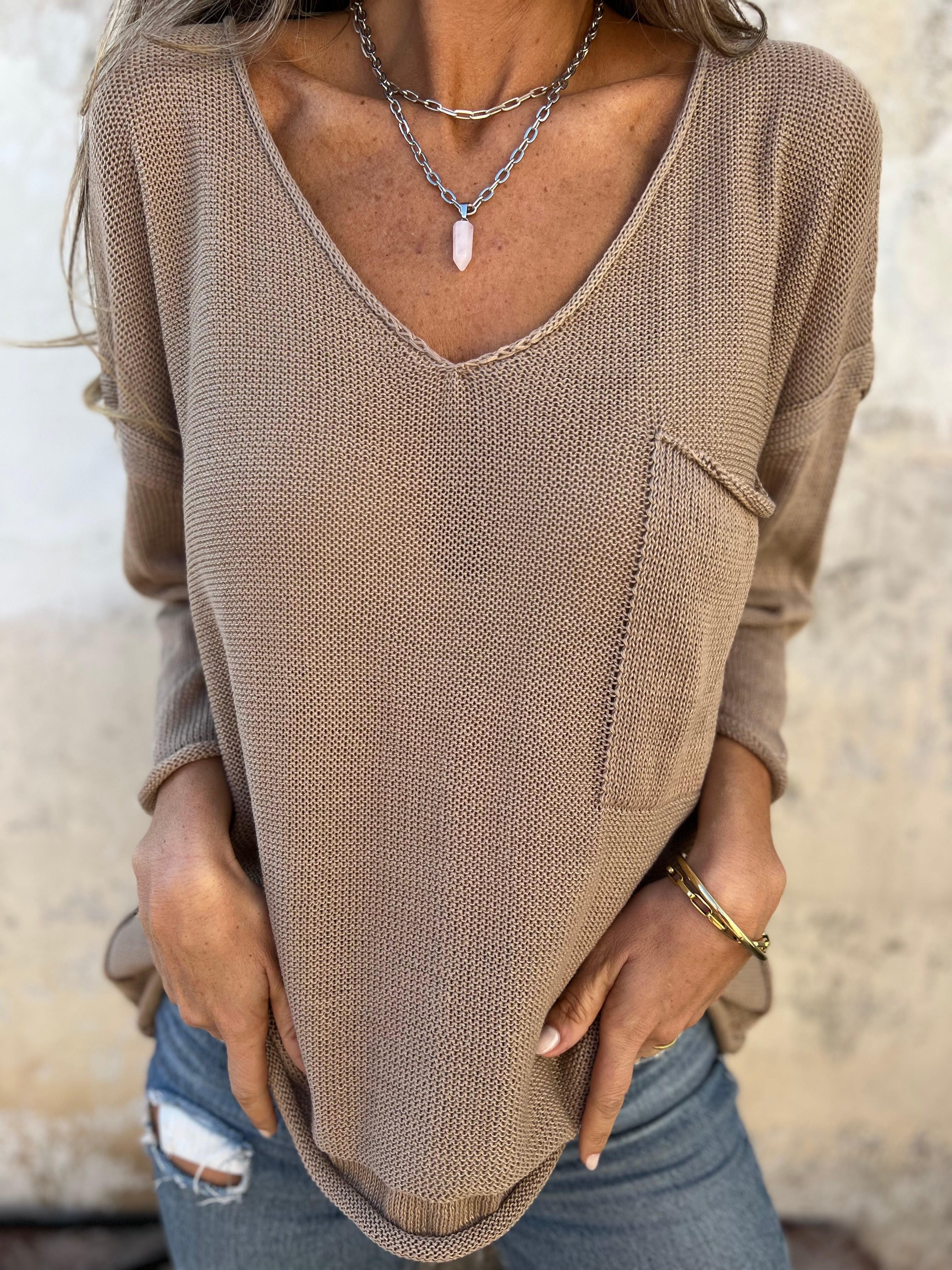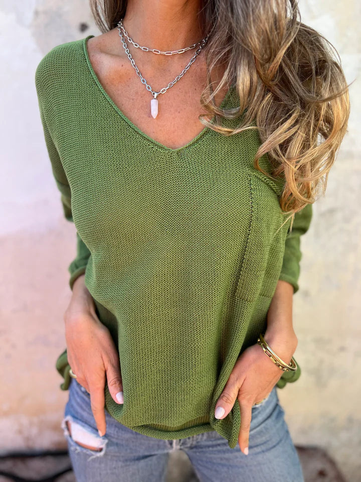 Casualowy sweter z dzianiny, z długim rękawem i dekoltem w kształcie litery V