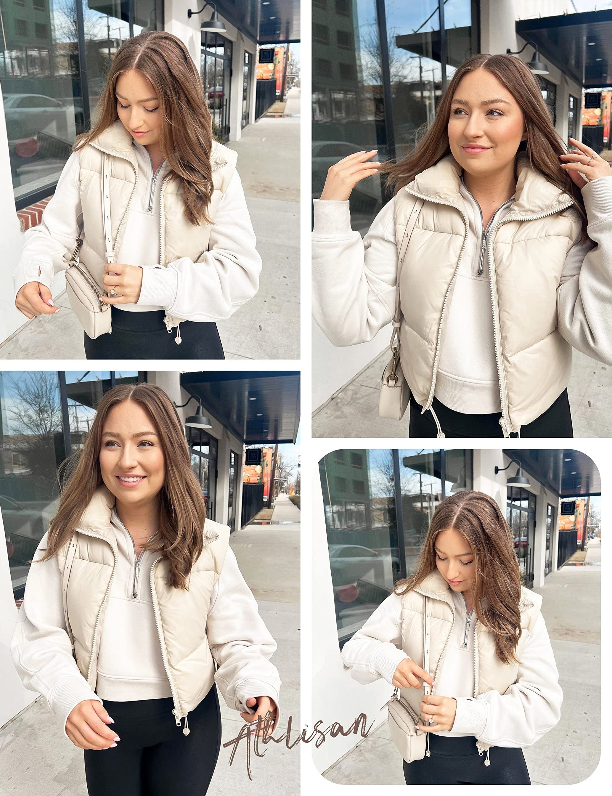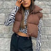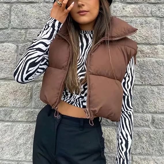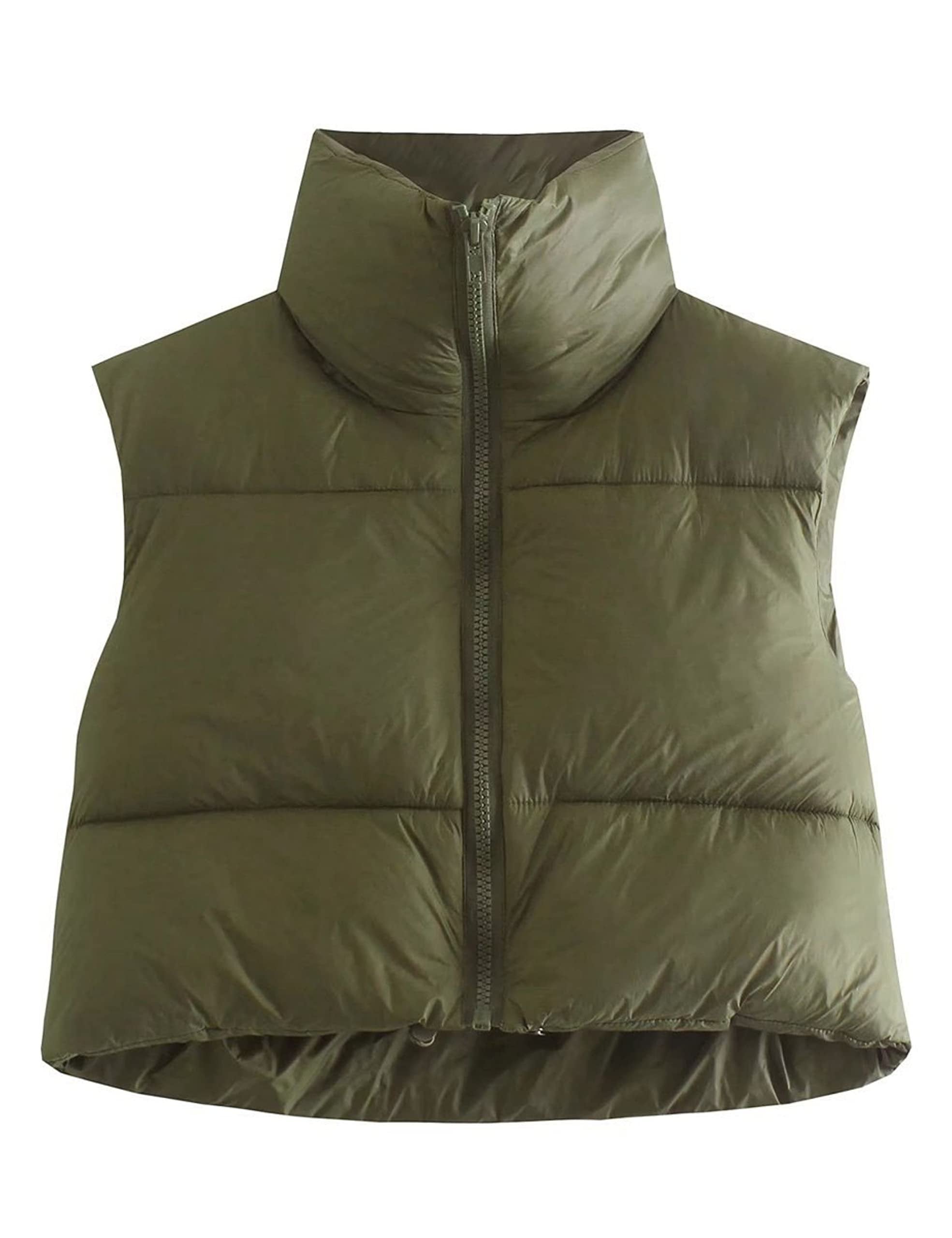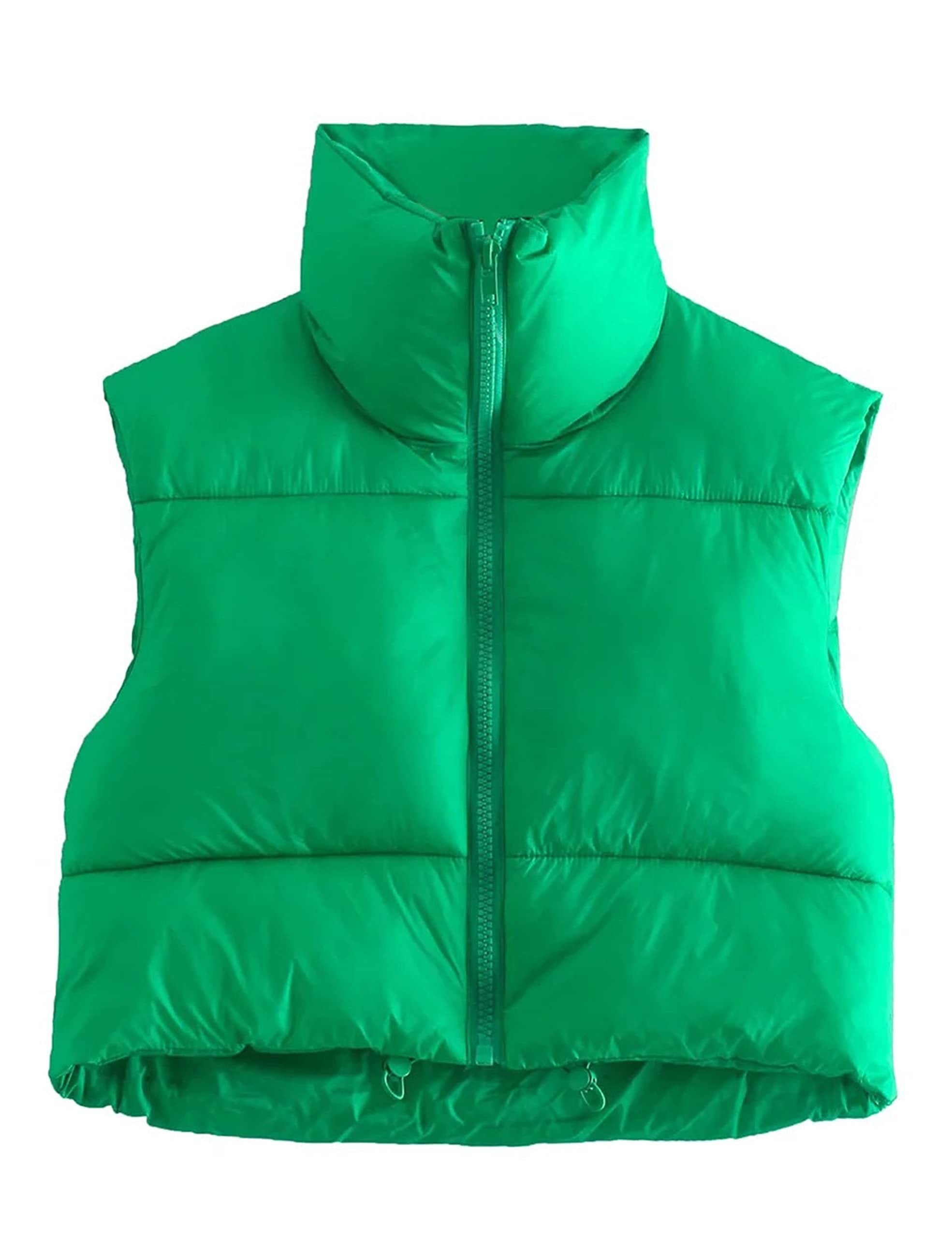 Damska krótka kamizelka puchowa. Do wyboru są kolory brązowy/czarny/biały/pomarańczowy/khki/zielony/gorący róż/czerwony/zieleń wojskowa/fioletowy/Hazeblue!