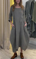 🌿 Styl bez wysiłku! Nasza bawełniano-lniana sukienka z okrągłym dekoltem to Twój wybór, jeśli chcesz stworzyć elegancki, swobodny wygląd. Komfort spotyka się z modą! 👗✨