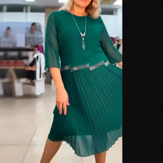 Zwiększ ilość dla Damska elegancka plisowana zwiewna sukienka
