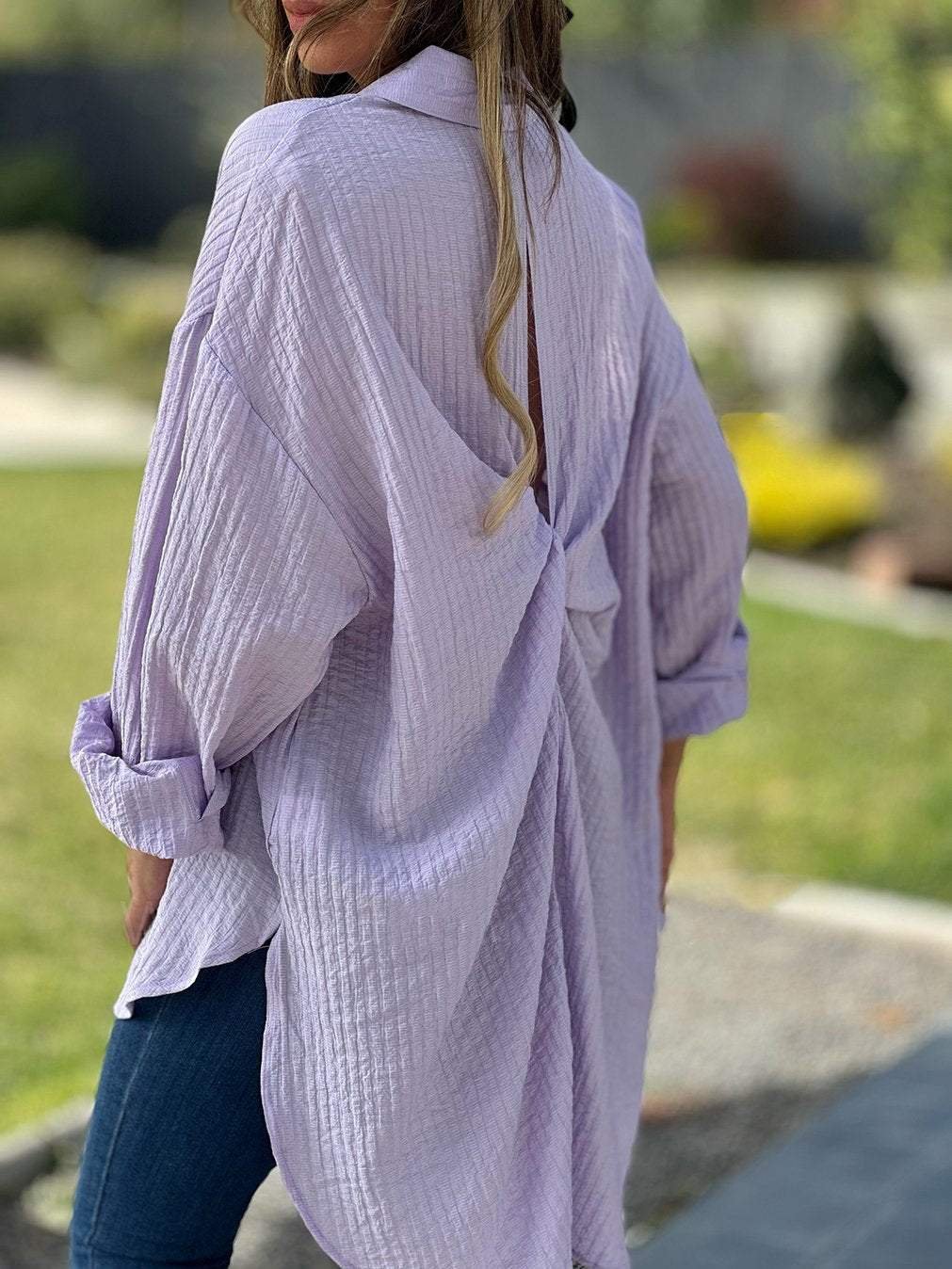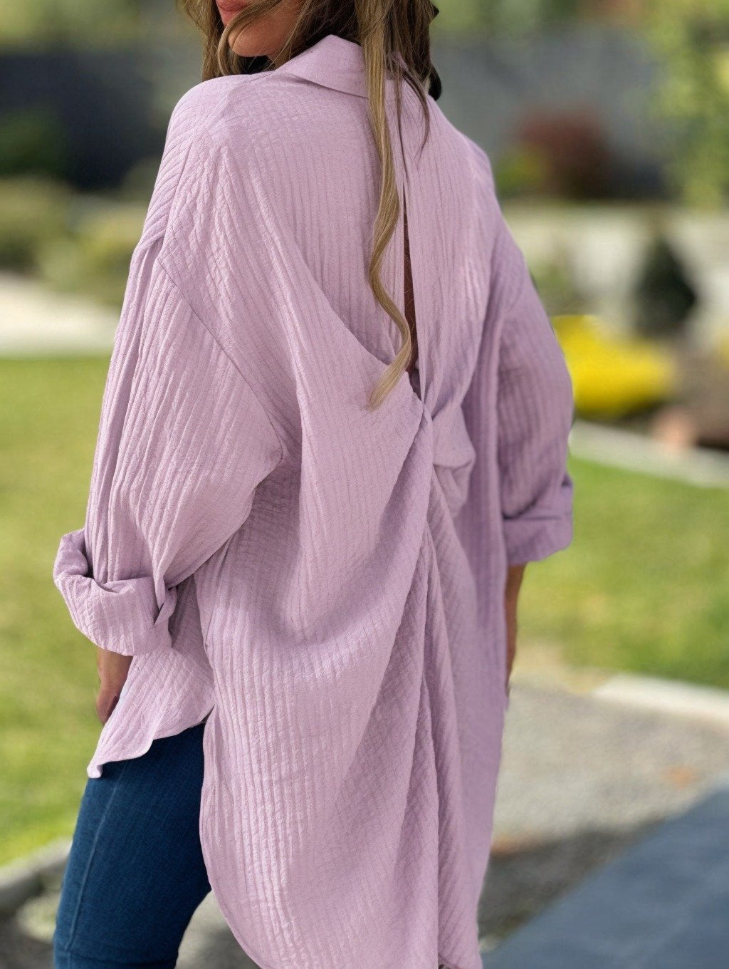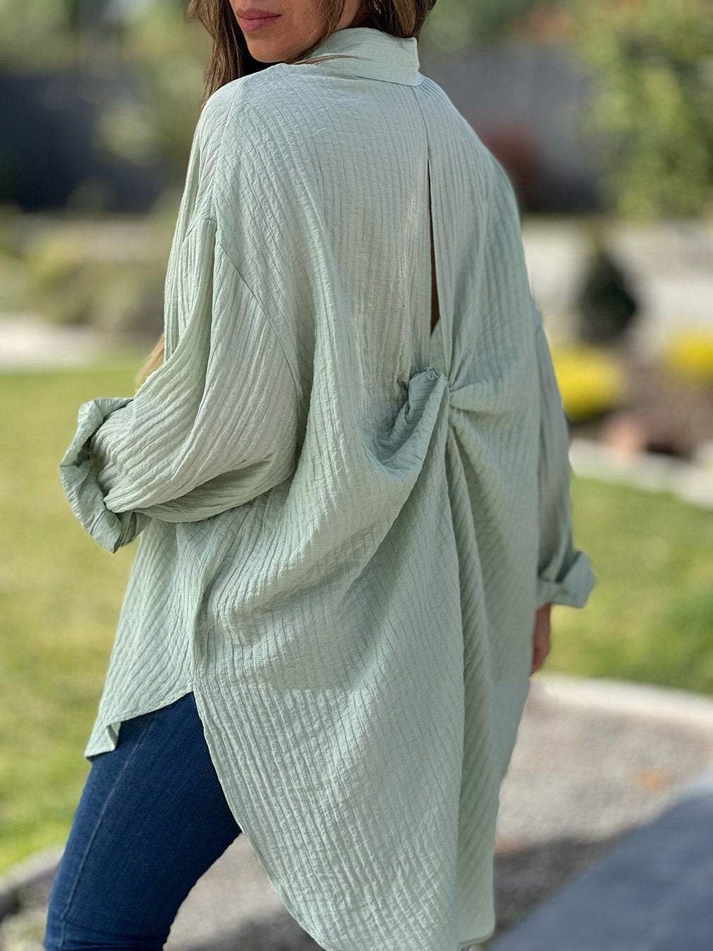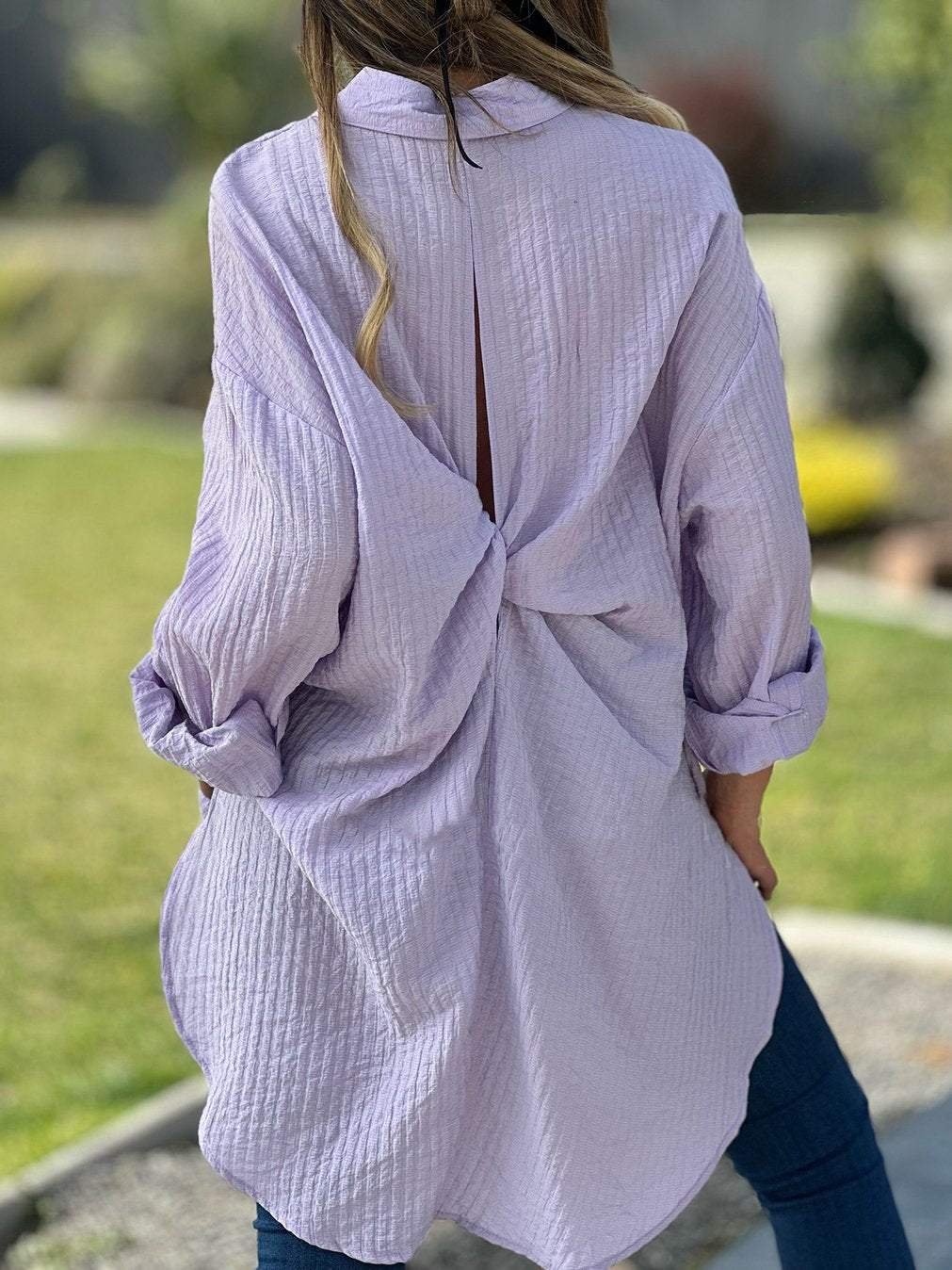 😍 Szykowny styl Cross Back! 🌸 Nasza damska koszula z długim rękawem to stylowy element codziennego noszenia. Przytulny materiał, modny design - pokochasz swój wygląd! 👗✨