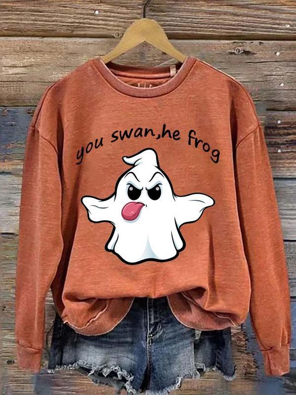 Damska koszulka na co dzień Halloween You Swan, on Frog Funny Slogan Ghost Print Bluza