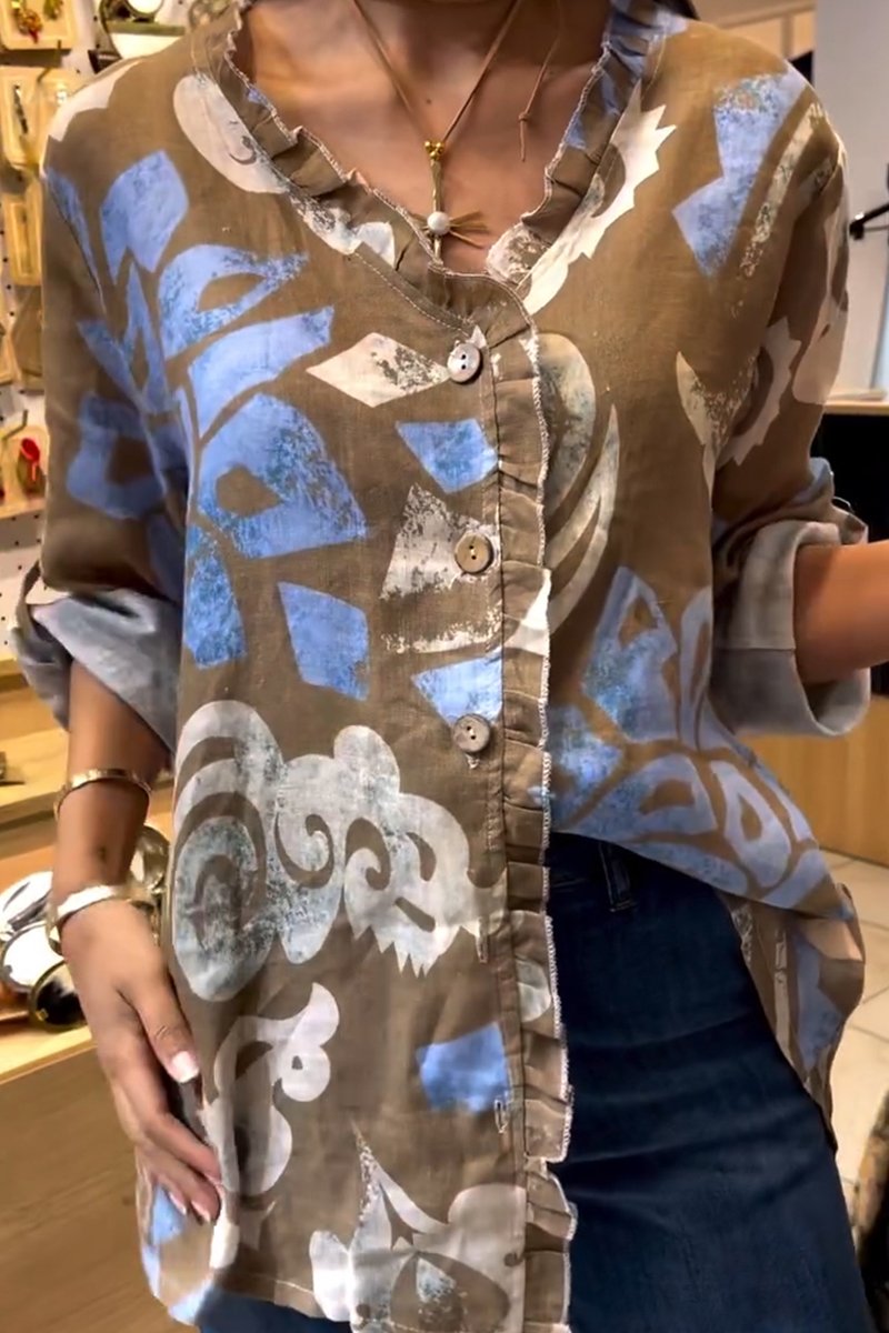 Damska koszula z długim rękawem i nadrukiem w stylu casual