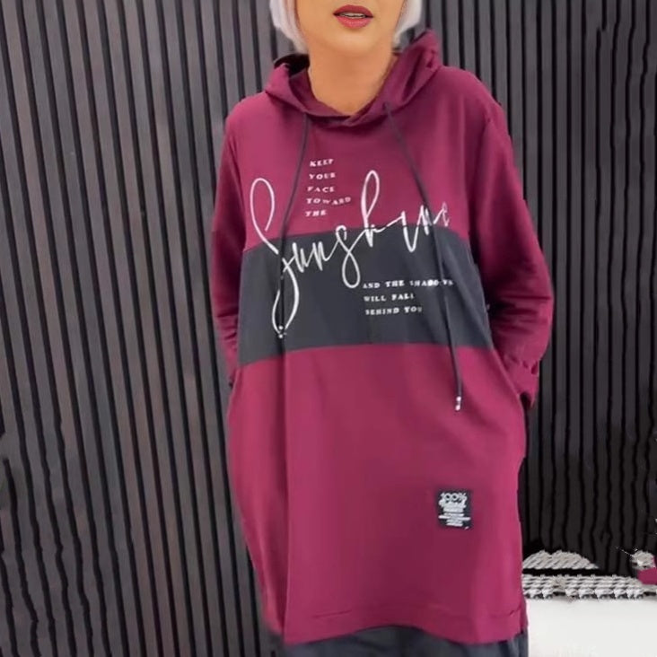 PROSTY KRÓJ Z NADRUKIEM LITEROWYM : Dzięki modnemu nadrukowi w kształcie litery z przodu ta sukienka z kapturem dodaje odważnego, nowoczesnego akcentu Twojej codziennej garderobie. Konstrukcja wyróżnia się, zachowując jednocześnie elegancki i swobodny wygląd.